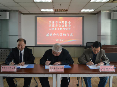 為了深入貫徹落實黨的十九大精神,不斷適應新時代新業態新發展的需要,更好地發揮各行業的職能優勢,形成整體合力,為天津經濟政治社會發展提供法律保障以及先進服務。2018年2月23日,天津市律師協會、天津市公證協會、天津市互聯網協會三家行業協會的戰略合作簽約儀式在天津市公證協會舉行。