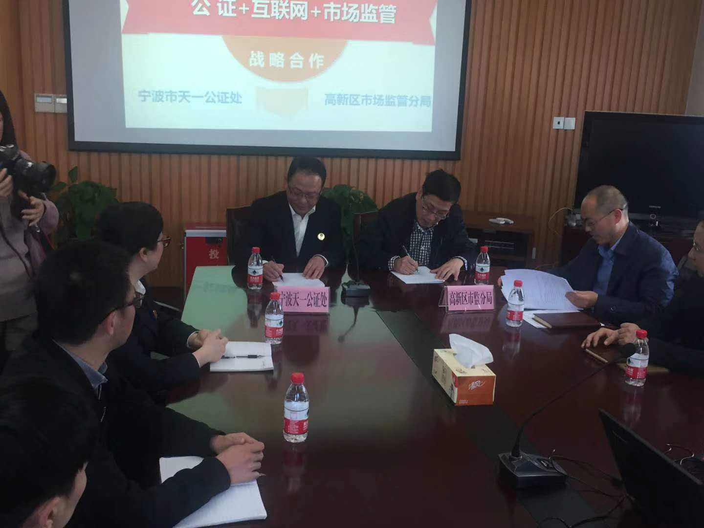 2018年4月18日,寧波市天一公證處與寧波市市場監督管理局高新區分局就“公證+互聯網+市場監管”簽署了合作協議,雙方在“互聯網+”的背景下全面啟動網上存證系統模式。